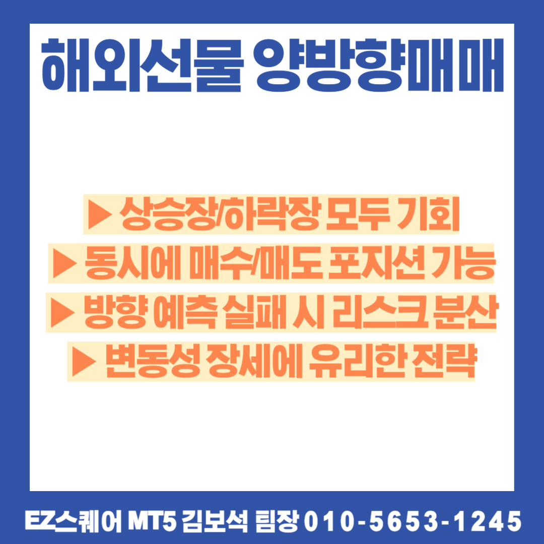 이처럼 시장의 방향성과 상관없이 수익을 낼 수 있다는 점에서 양방향 매매는 단타 트레이더뿐 아니라 중장기 투자자에게도 매우 유용한 전략입니다.