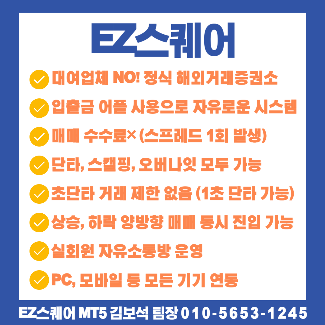 안녕하세요. EZ스퀘어 MT5 김보석 팀장입니다.