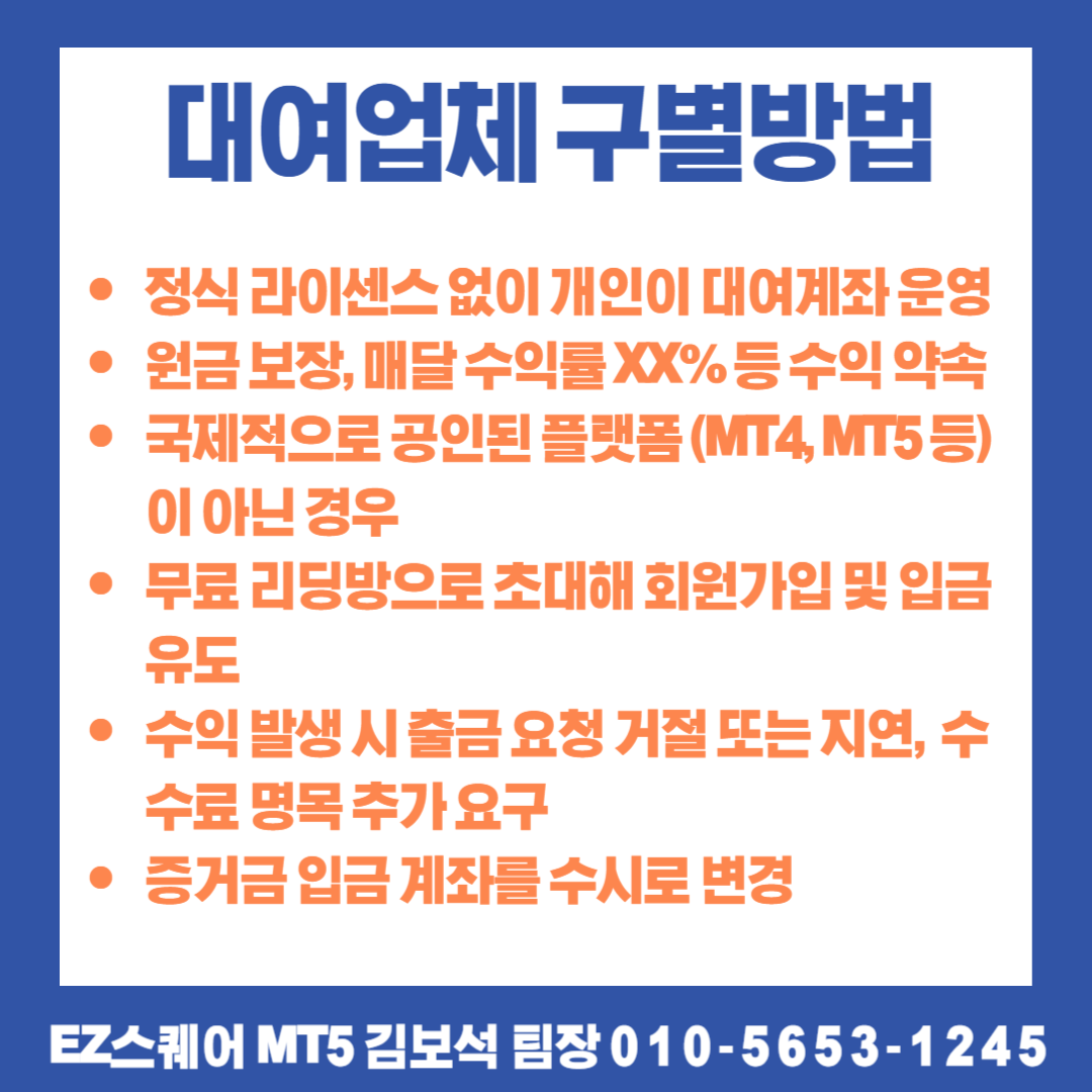 - 정식 라이센스 없이 개인이 대여계좌 운영