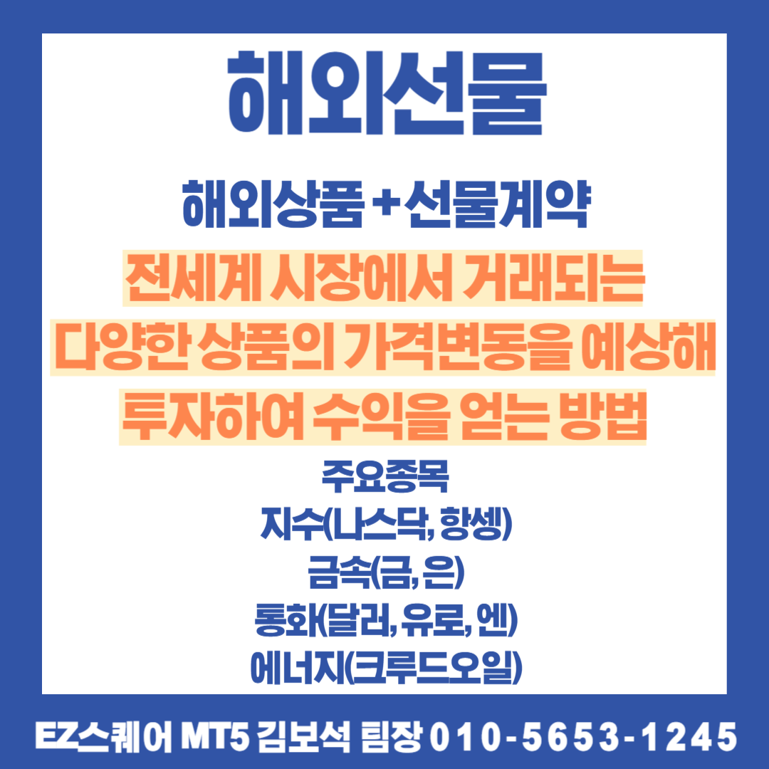 안녕하세요. EZ스퀘어 MT5 김보석 팀장입니다.