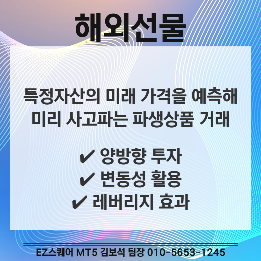 안전하고 투명한 환경에서 해외선물 거래를 시작하고 싶으신 분들은 EZ스퀘어 김보석 팀장에게 편하게 문의하세요! (▼이미지 클릭)