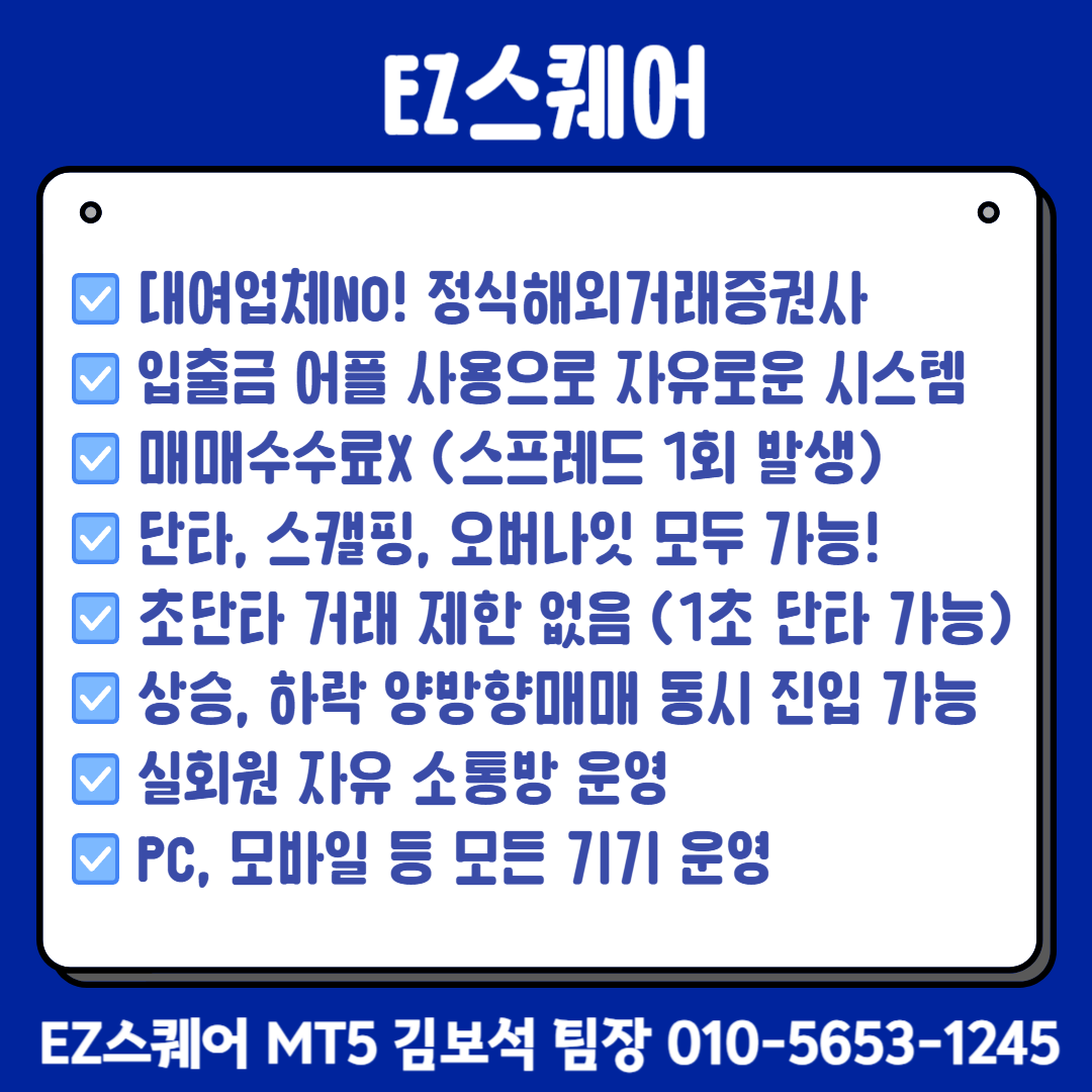 안녕하세요. EZ스퀘어 MT5 김보석 팀장입니다.